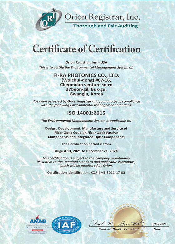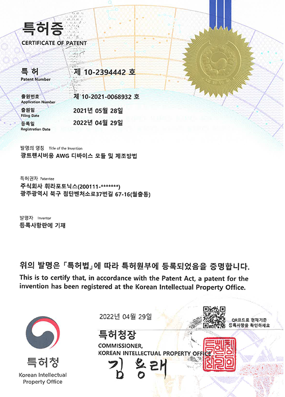 AWG 디바이스 모듈 제조법 특허증