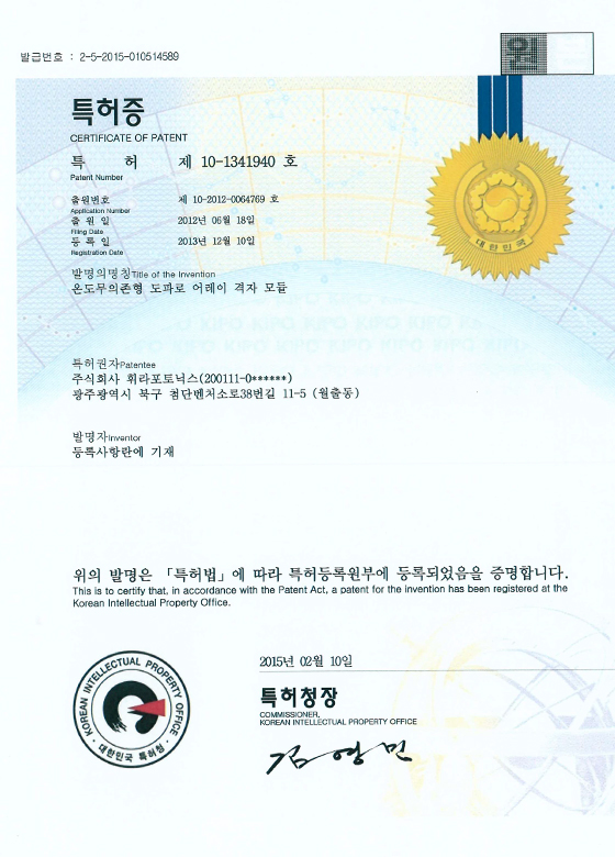 어레이 격자 모듈 특허증